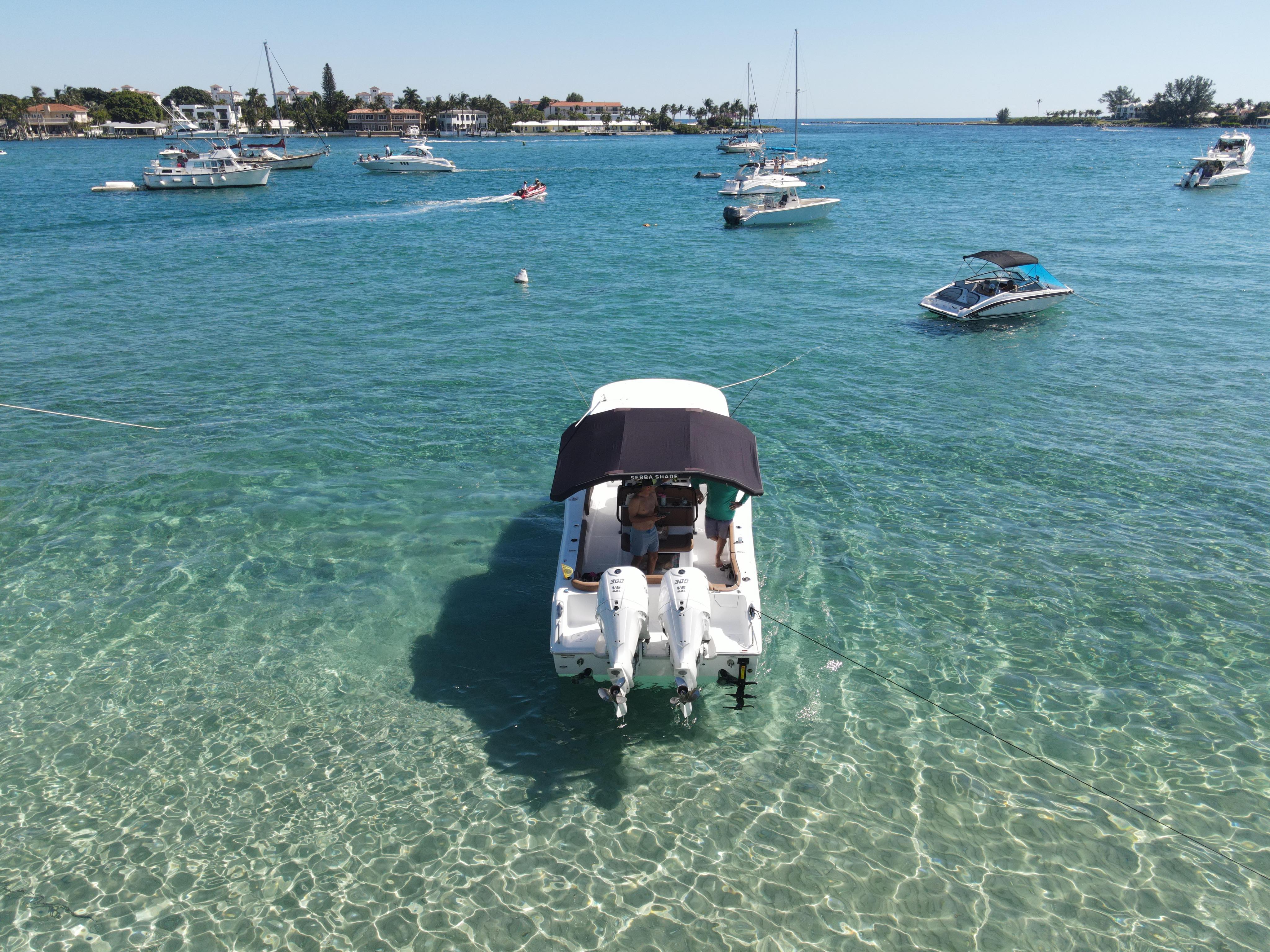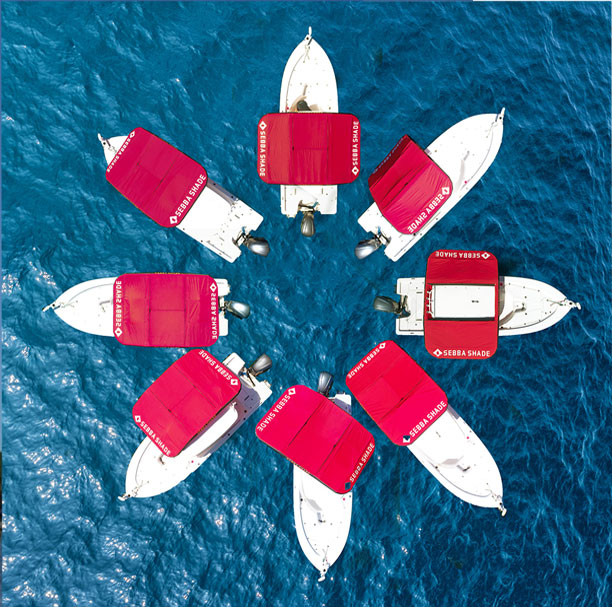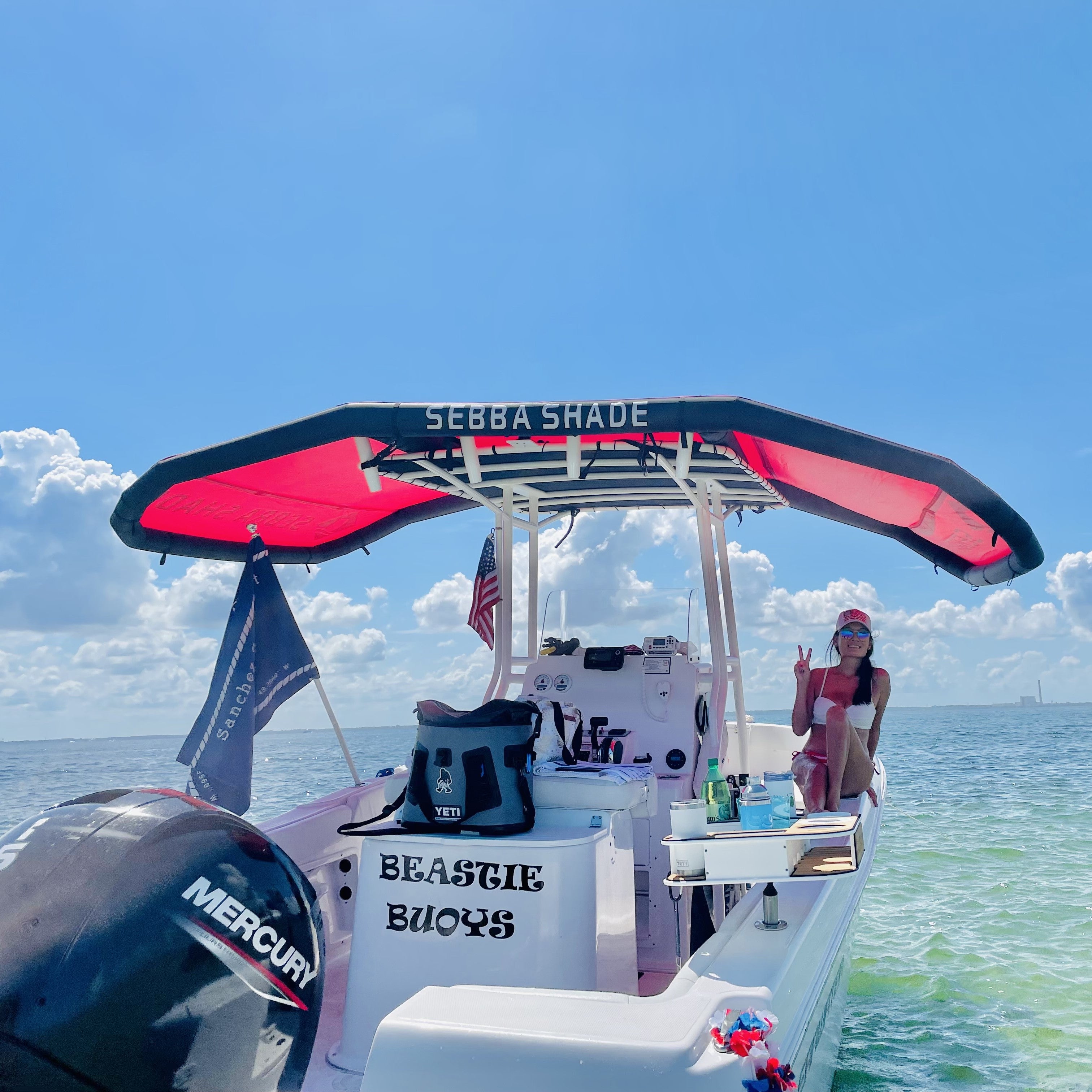 Note: Boat must have an existing T-top, Arch, or Bimini for Sebba Shade to attach properly.
