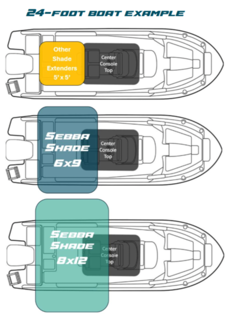 Sebba Shade 6x9 model (our smallest shade) is 60% larger than the competition’s “large” shades. Stay cool out there with the most shade coverage available!