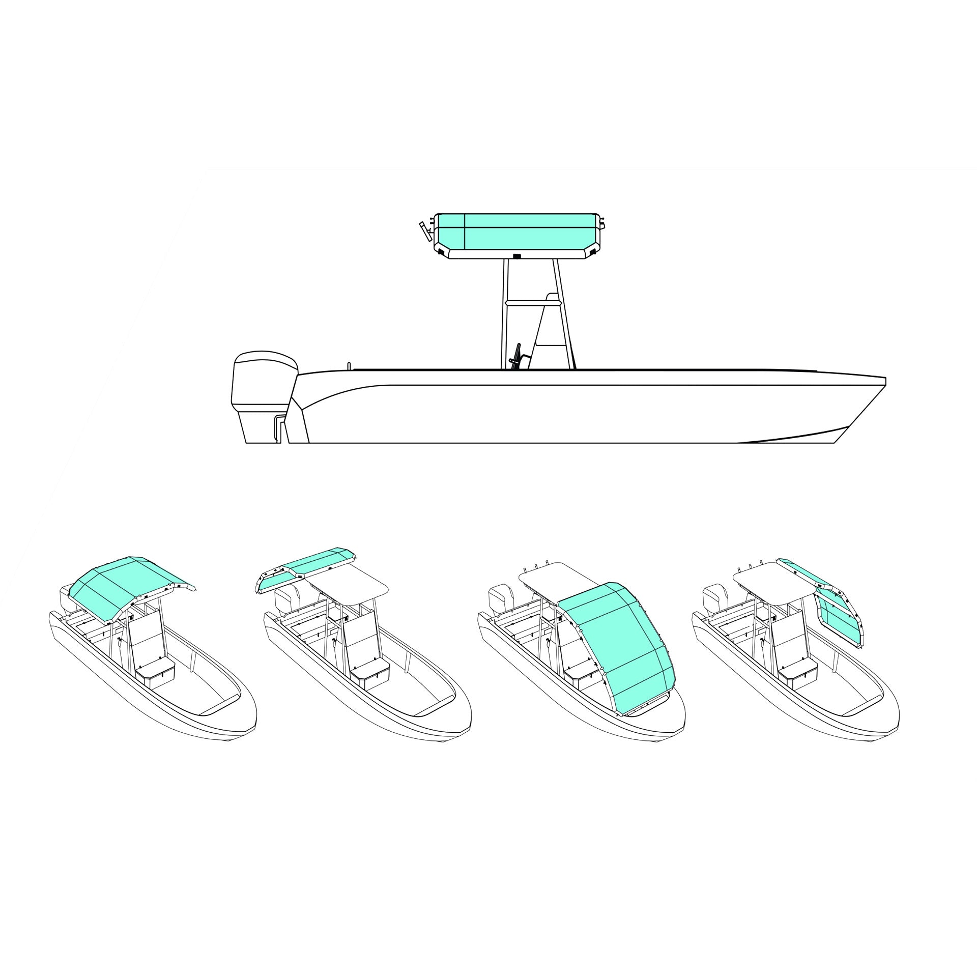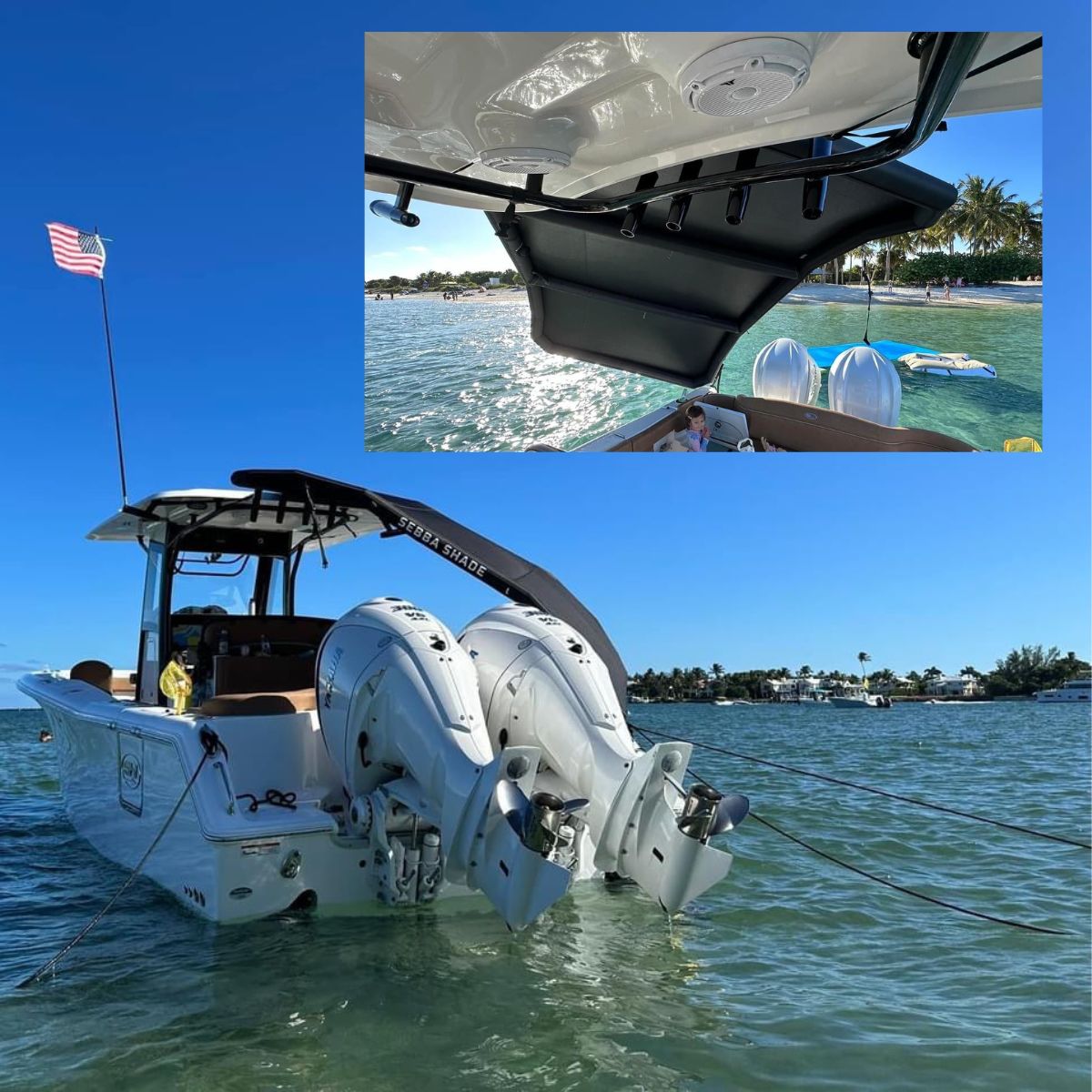 Note: Boat must have an existing T-top, Arch, or Bimini for Sebba Shade to attach properly.